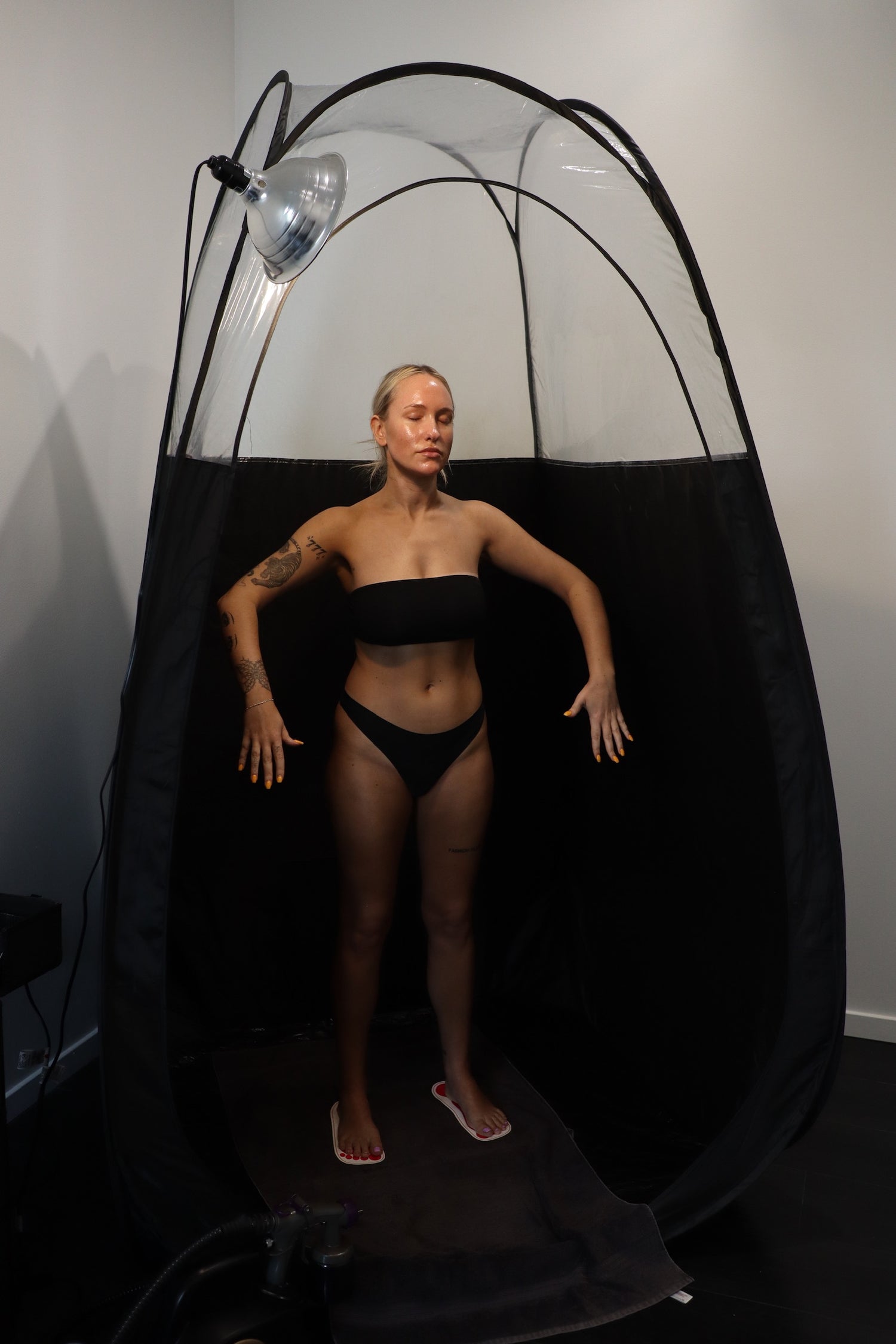 For the smoothest, most even tan, we recommend shaving and showering 24 hours before your appointment. Shaving removes a thin layer of skin, so giving your skin time to recover ensures your tan applies evenly and lasts longer.