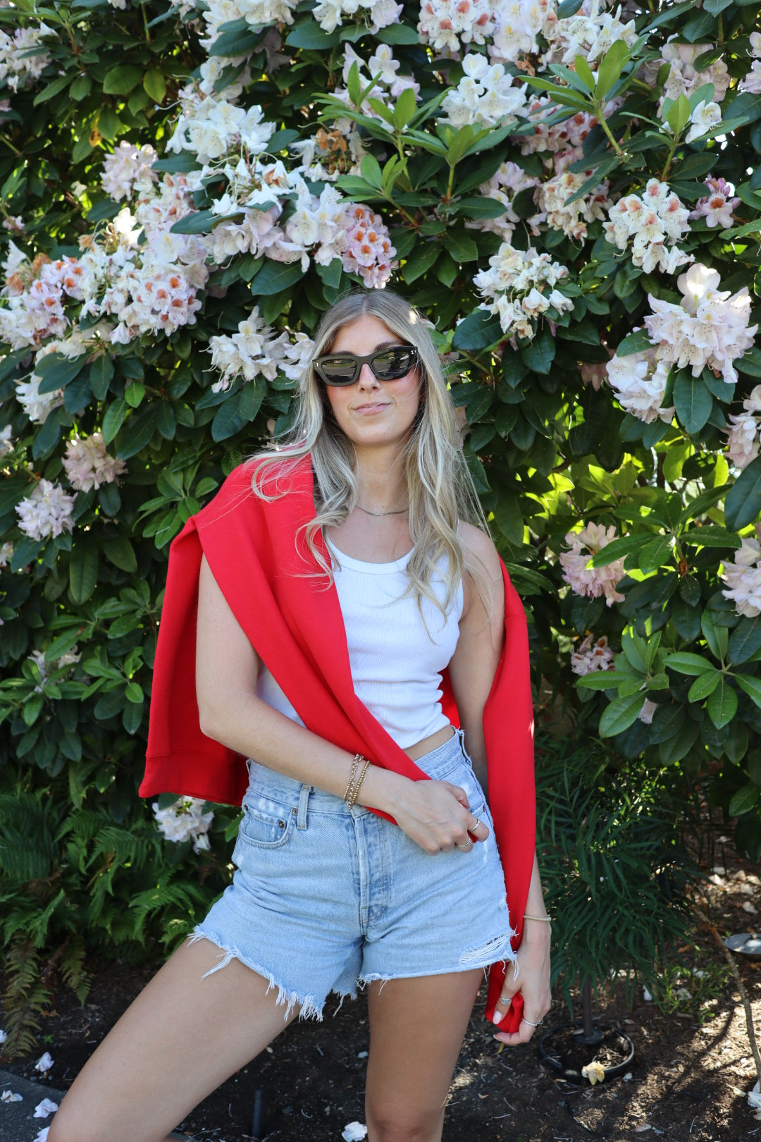 Meet your new summer staple. The Seven Summer Crew in bold cherry red is made for golden hour hangs, breezy lake nights, and post-spray tan coziness. Lightweight yet soft, this 8oz crewneck is crafted from a comfy 50/50 cotton/poly blend—perfect for tossing on after your tan or packing for weekend adventures.